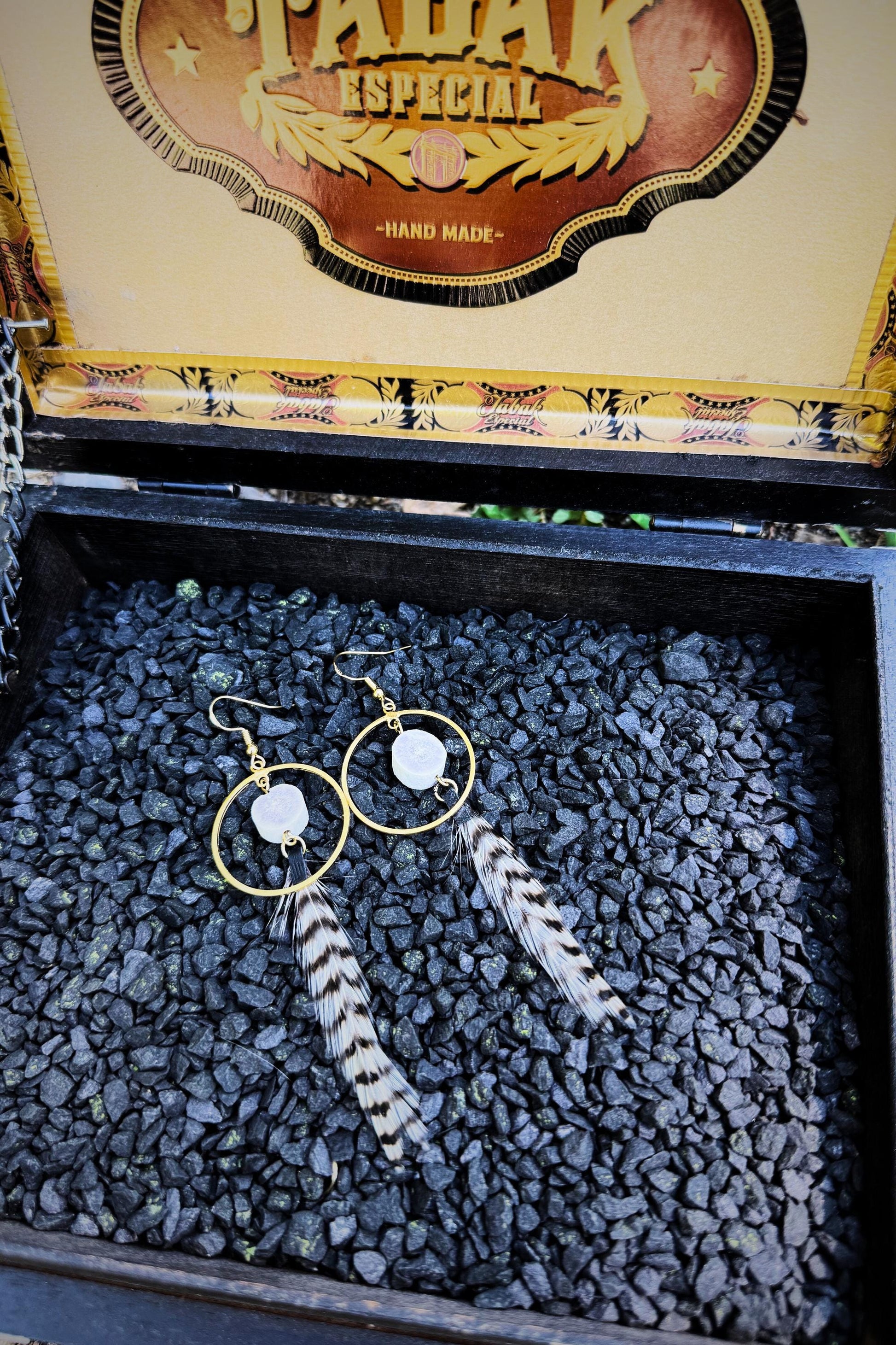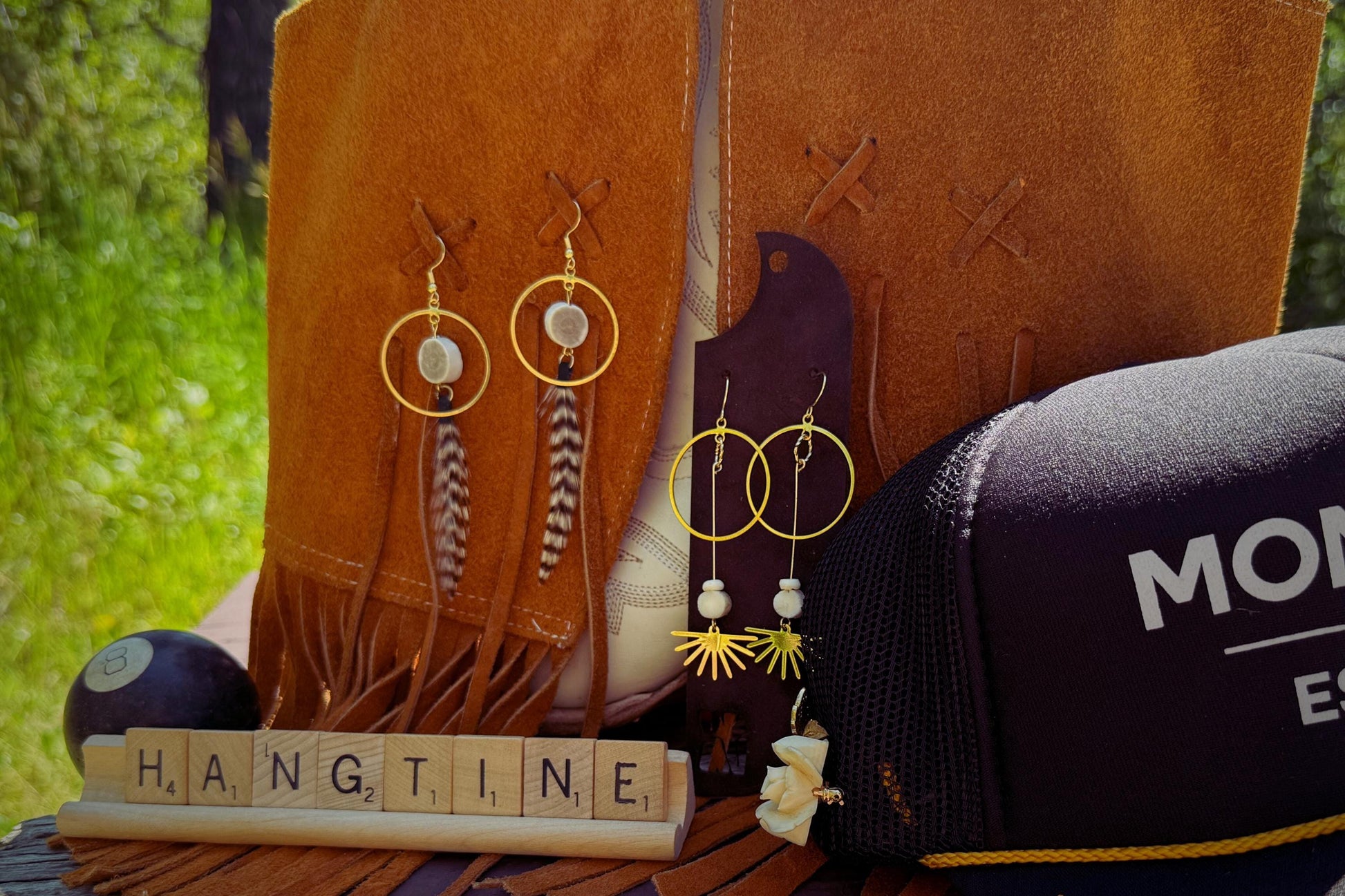 These beauties are crafted from soft leather, feathers, repurposed bullet casings and naturally shed antlers. I hand design each piece of jewelry from antlers I find while shed hunting in Montana. Every piece reflects the raw beauty of the land it comes from. No two pieces are ever alike, each one carries the unique texture, color, and story of the materials used. The earrings are very lightweight, the earwires are 18K gold plated and they measure around 5.5" in length and may be trimmed to your liking. The color of the antler and leather may vary slightly and will be unique to each pair of earrings. These are perfect for the wild hearted wanderers and the grounded western souls.