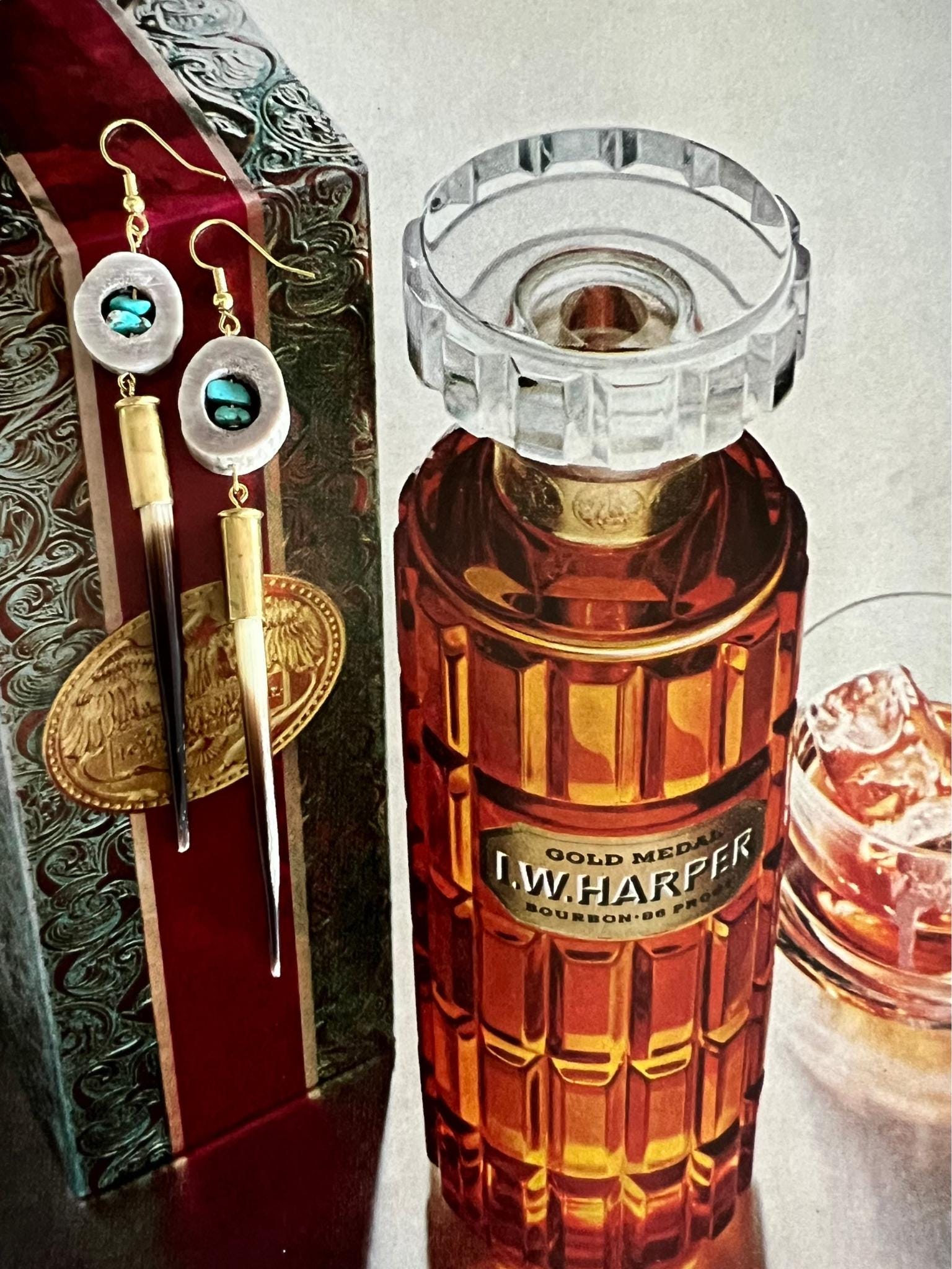 One of a kind, just like you! Here at Hangtine I hand design each piece of jewelry from antlers I find while shed hunting in Montana. I have paired the antlers with porcupine quills, recycled bullet casings and turquoise. Every piece reflects the raw beauty of the land it comes from. No two pieces are ever alike, each one carries the unique texture, color, and story of the materials used. The earrings are very lightweight, the earwires are 18K gold plated and the earrings will measure between 3-4" in length. The color of the quill and antler will be unique to each pair of earrings.
