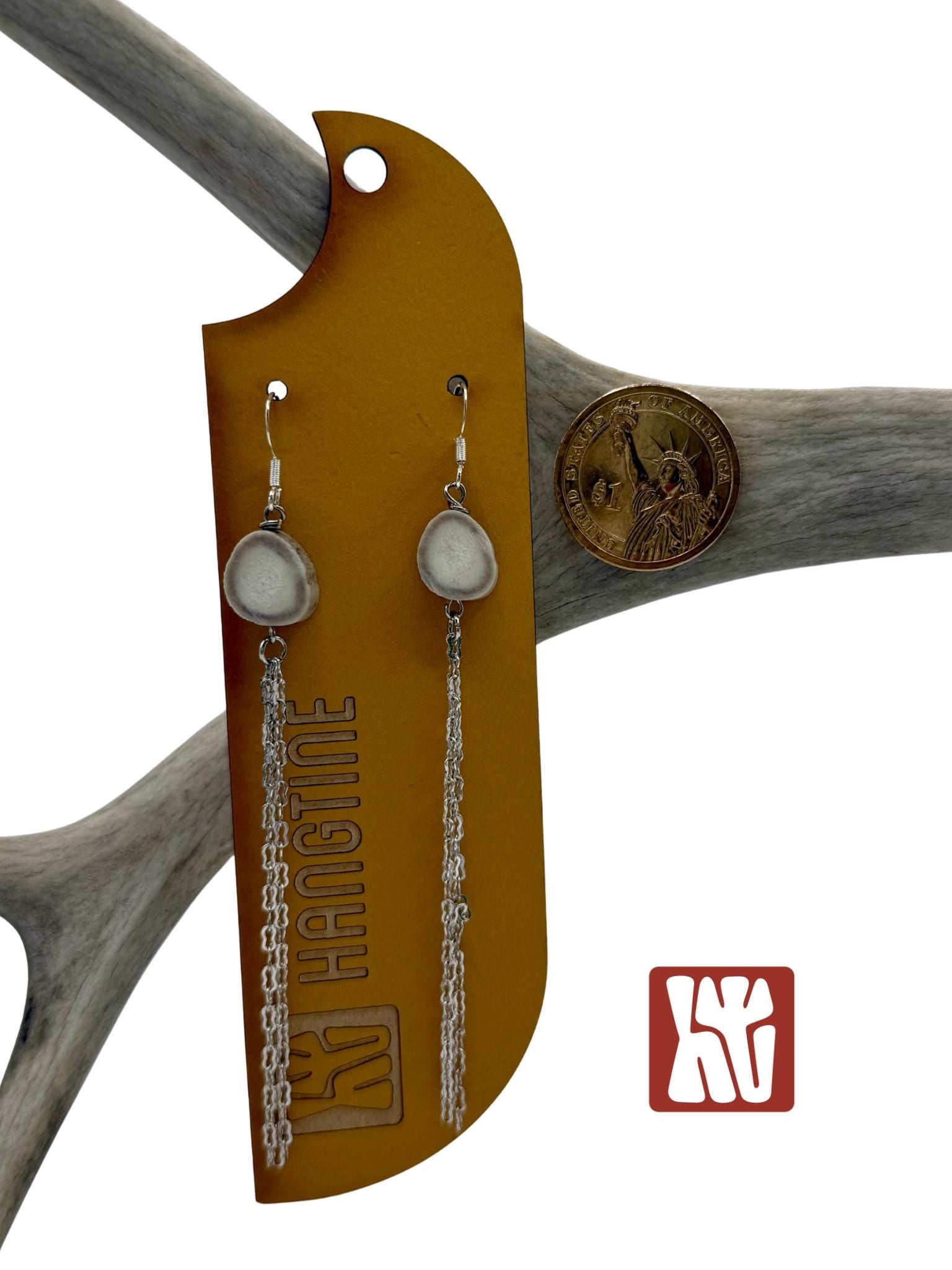 Elevate your look with a mix of wild and refined. Here at Hangtine I hand design each piece of jewelry from antlers I find while shed hunting in Montana. I have paired these antlers with silver chain and sterling silver plated earwires. Every piece reflects the raw beauty of the land it comes from. No two pieces are ever alike, each one carries the unique texture, color, and story of the materials used. The earrings are very lightweight, the earwires are sterling silver plated and the earrings will measure approximately 4" length. These are perfect for sunset concerts, formal wear or everyday statement wear.