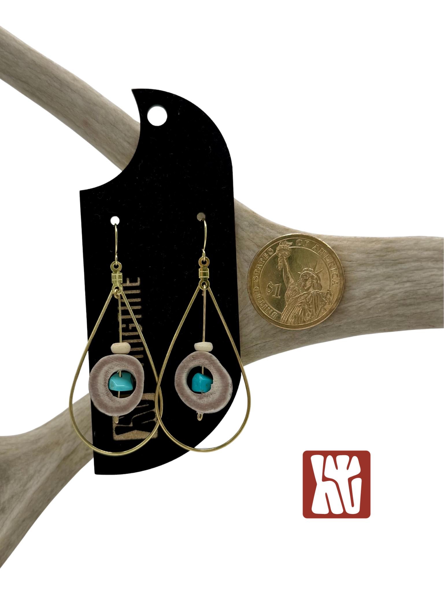 Lightweight, wild and full of spirit, these earrings are created for untamed hearts. Here at Hangtine I hand design each piece of jewelry from antlers I find while shed hunting in Montana. I have paired the antlers with gleaming gold and turquoise. Every piece reflects the raw beauty of the land it comes from. No two pieces are ever alike, each one carries the unique texture, color, and story of the materials used. The earrings are lightweight, the earwires are 18K gold plated and the earrings will measure around 2.5" in length. The color and shape of the antler will be unique to each pair of earrings.