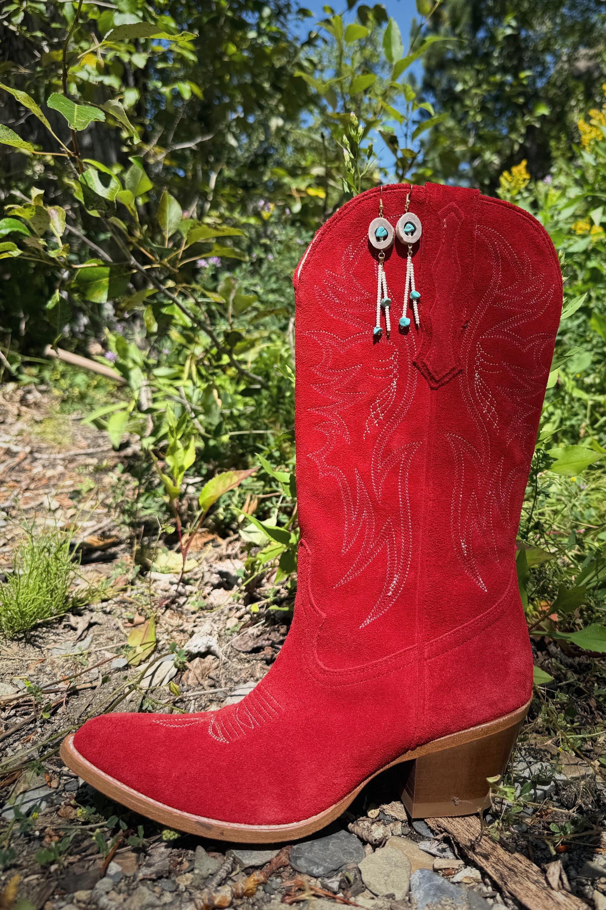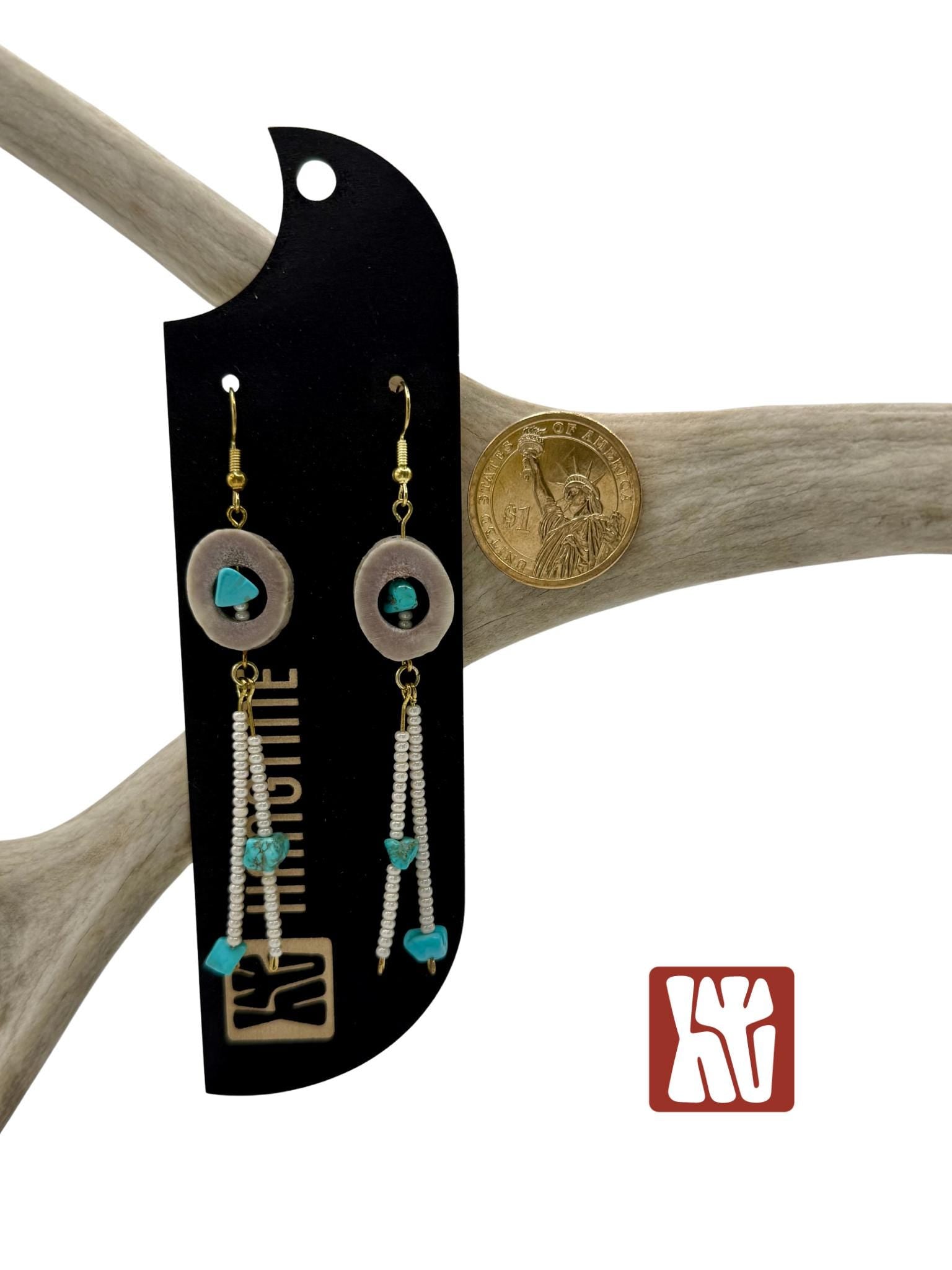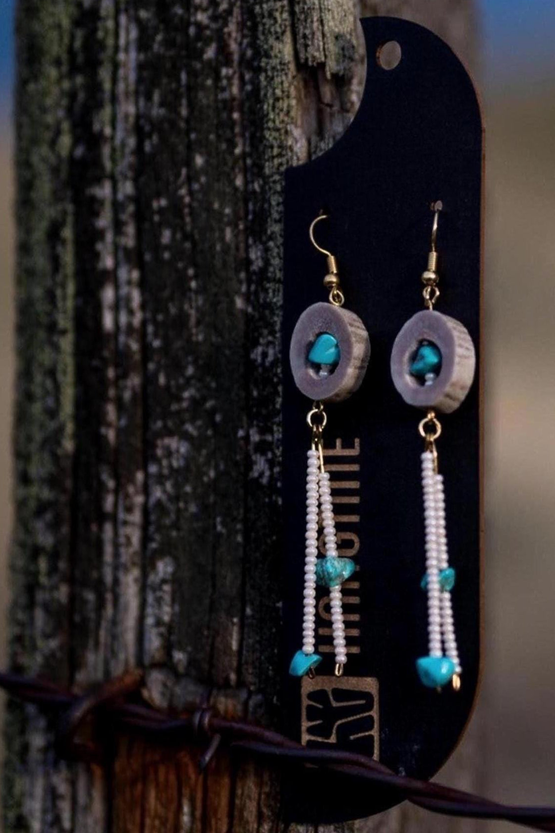 Lightweight, wild and full of spirit, these earrings are created for untamed hearts. Here at Hangtine I hand design each piece of jewelry from antlers I find while shed hunting in Montana. I have paired the antlers with beads and turquoise. Every piece reflects the raw beauty of the land it comes from. No two pieces are ever alike, each one carries the unique texture, color, and story of the materials used. They are very lightweight and the earwires are 18K gold plated. The earrings will measure approximately 3.5" length. The color and shape of the antler will be unique to each pair of earrings. These beauties are a love letter to Montana.